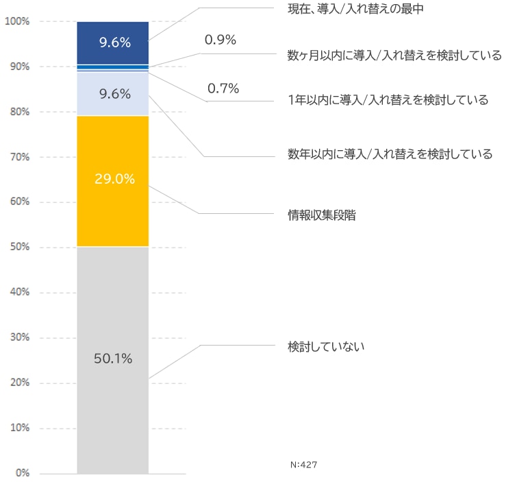 2022年9月に実施した独自調査「基幹システム 利用実態調査 2022」によると、すべての業務をカバーするオールインワンタイプのERPパッケージを利用する企業の割合は17.6%にとどまっています。